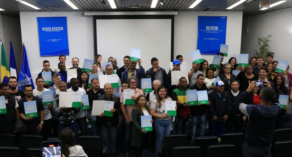 Cerca de 50 alunos das primeiras turmas dos cursos de pavimentação e de instalação hidráulica oferecidos pela Companhia Águas de Joinville (CAJ), em parceria com o Senai, concluíram os estudos e receberam o diploma. A cerimônia de formatura ocorreu na noite de quinta-feira, na sede do Senai Norte.