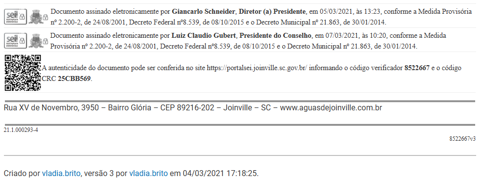 Joinville, 04 de março de 2021.