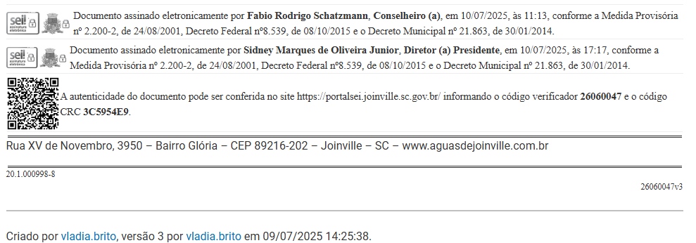 Por meio desta, autorizo a Companhia Águas de Joinville a incluir as pessoas físicas e jurídicas aqui mencionadas no Cadastro de Partes Relacionadas mantido pela Companhia.