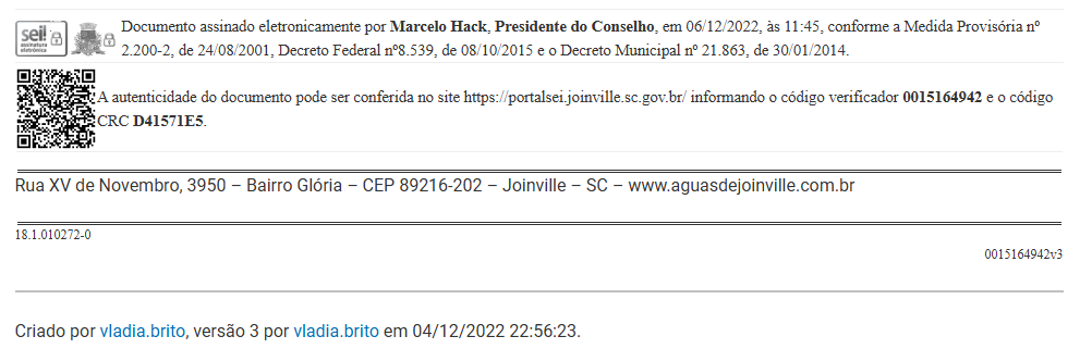 Este Regimento foi aprovado na Reunião Ordinária do Conselho de Administração realizada em 30 de novembro de 2022, Ata SEI 0015083941.